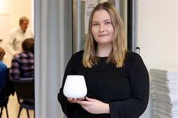Victoria Wistemar läser tredje året på Industridesignprogrammet och under höstterminen fick klassen i uppdrag att ta fram en ny design av en radonsensor. 15 studenter arbetade med utmaningen under sex veckor och sedan var det dags att presentera resultaten för uppdragsgivaren, MidDec Scandinavia.
