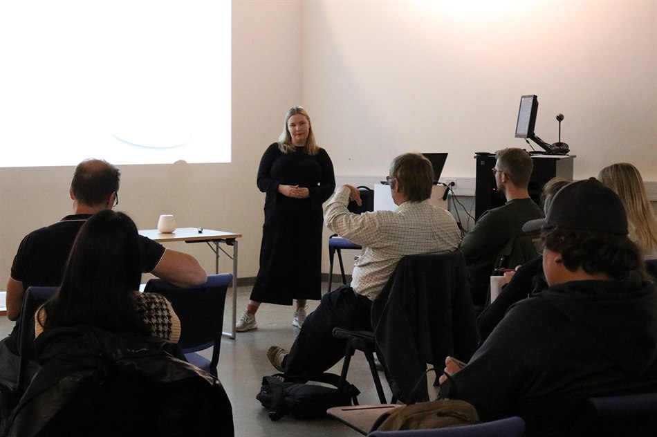 Studenterna presenterade sina olika designer för MidDec och examinatorn av kursen.