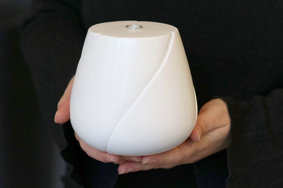 - Jag ville att produkten utstråla sin funktion, att den andas, är snäll, lätt och luftig. Det ska vara något som man vill ha i hemmet. Jag tänker även att man adderar fler funktioner så som temperatur och koldioxidnivå. Den mäter inte bara radon, den mäter luftkvalité, berättar Viktoria.
